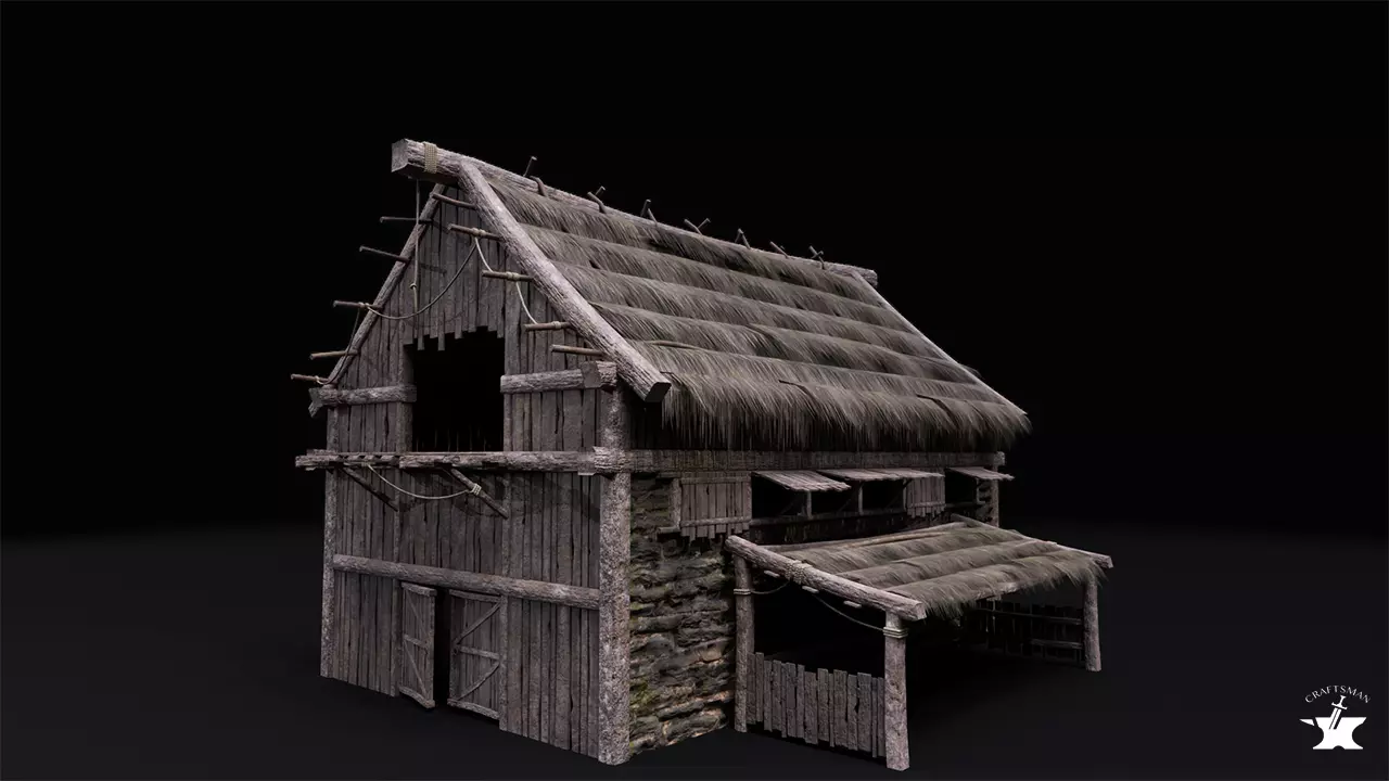 Realistic Medieval Barn Low-poly 3D model