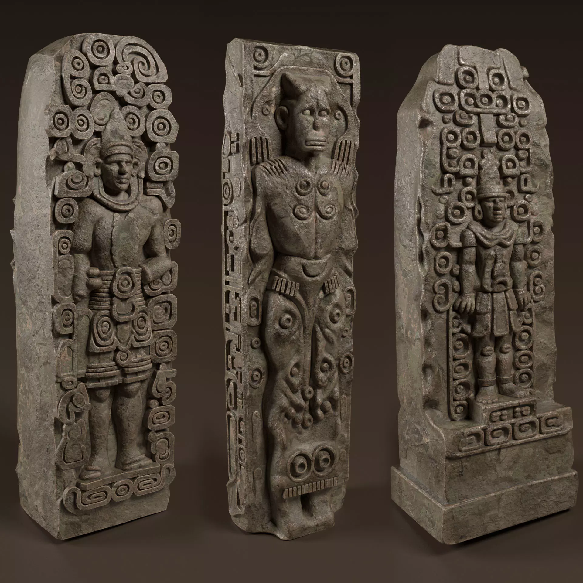 Stelae of Copan Mayan Monuments Low-poly 3D model