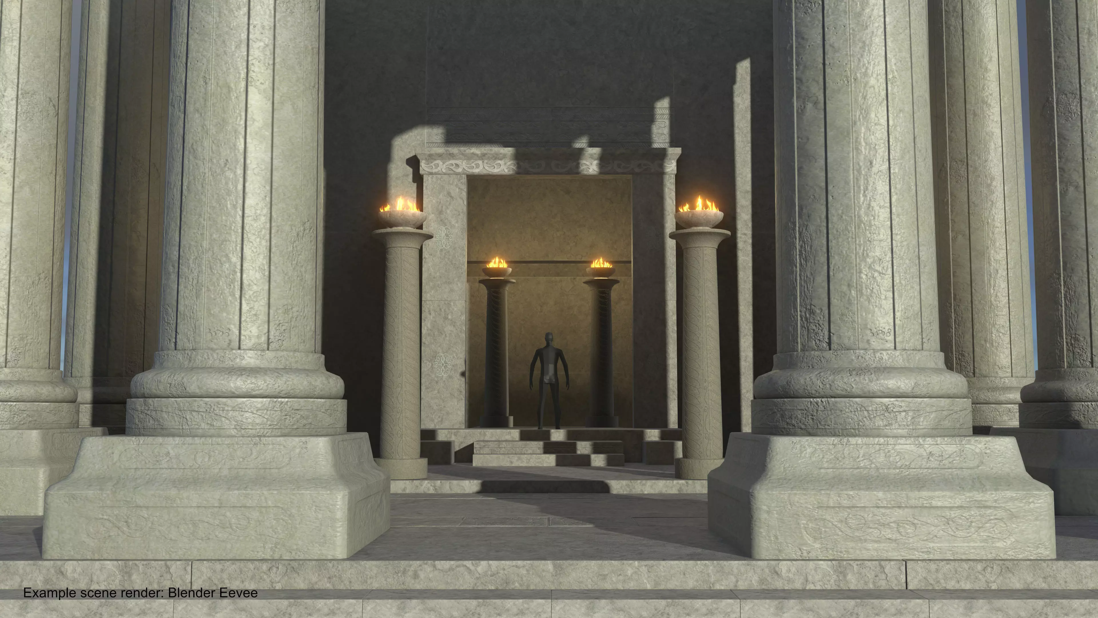• A comprehensive Blender file containing all 15 parts, along with a fully assembled temple example to showcase possible configurations.