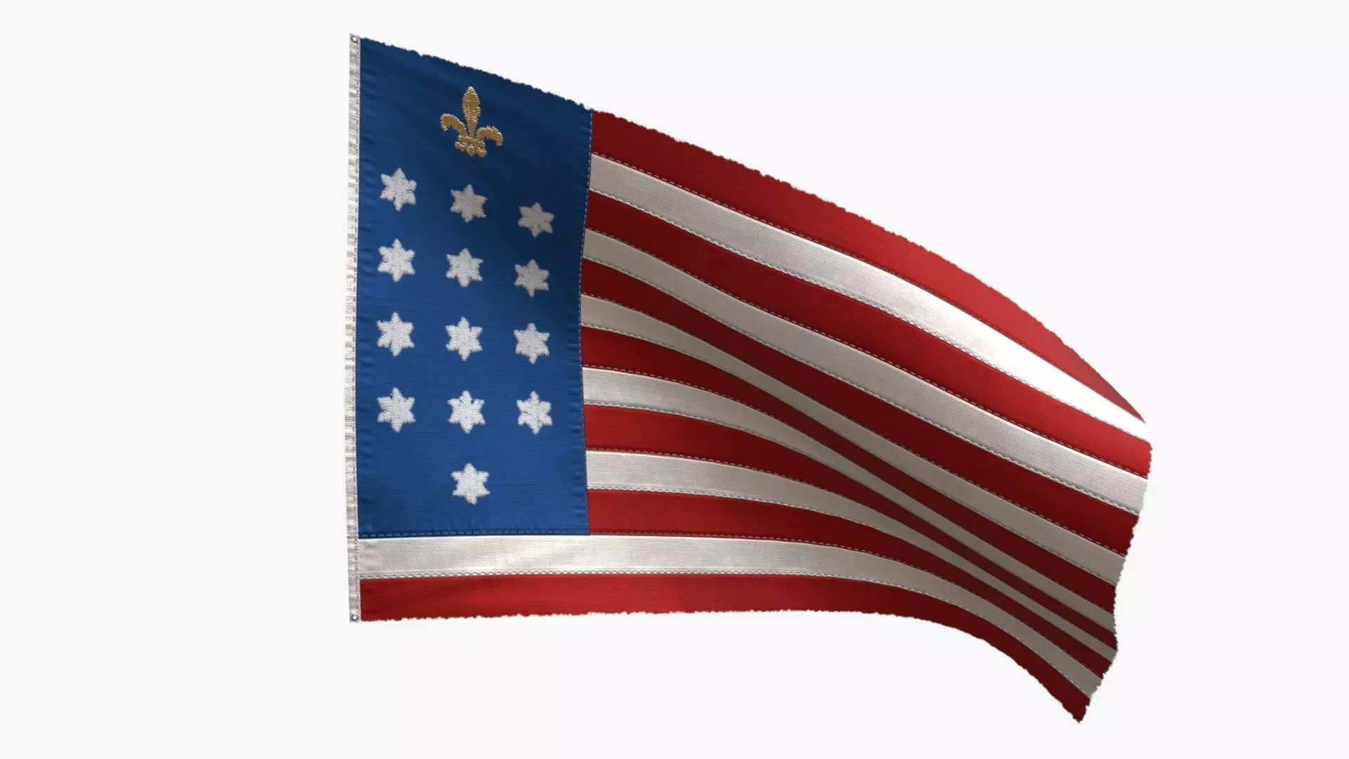 The 3D model of the United States-French Alliance Flag used from 1781 to 1782. The model includes 3 materials for clean version, dirty version and bloody version. All stars are in embroidery floss and many details as folds and wrinkles around all seams to get the most realistic fabric effect.