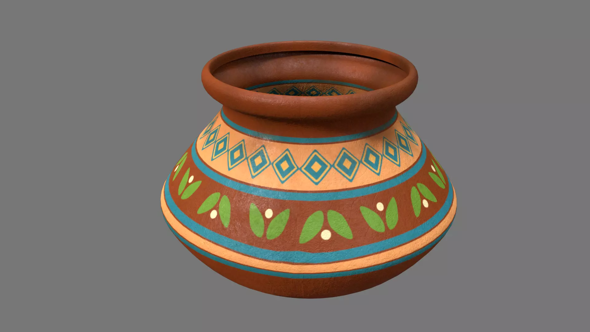 Asset Name : VesselF (Prop Stylized)Soil Pot (Crock) having stylized design painted on it.