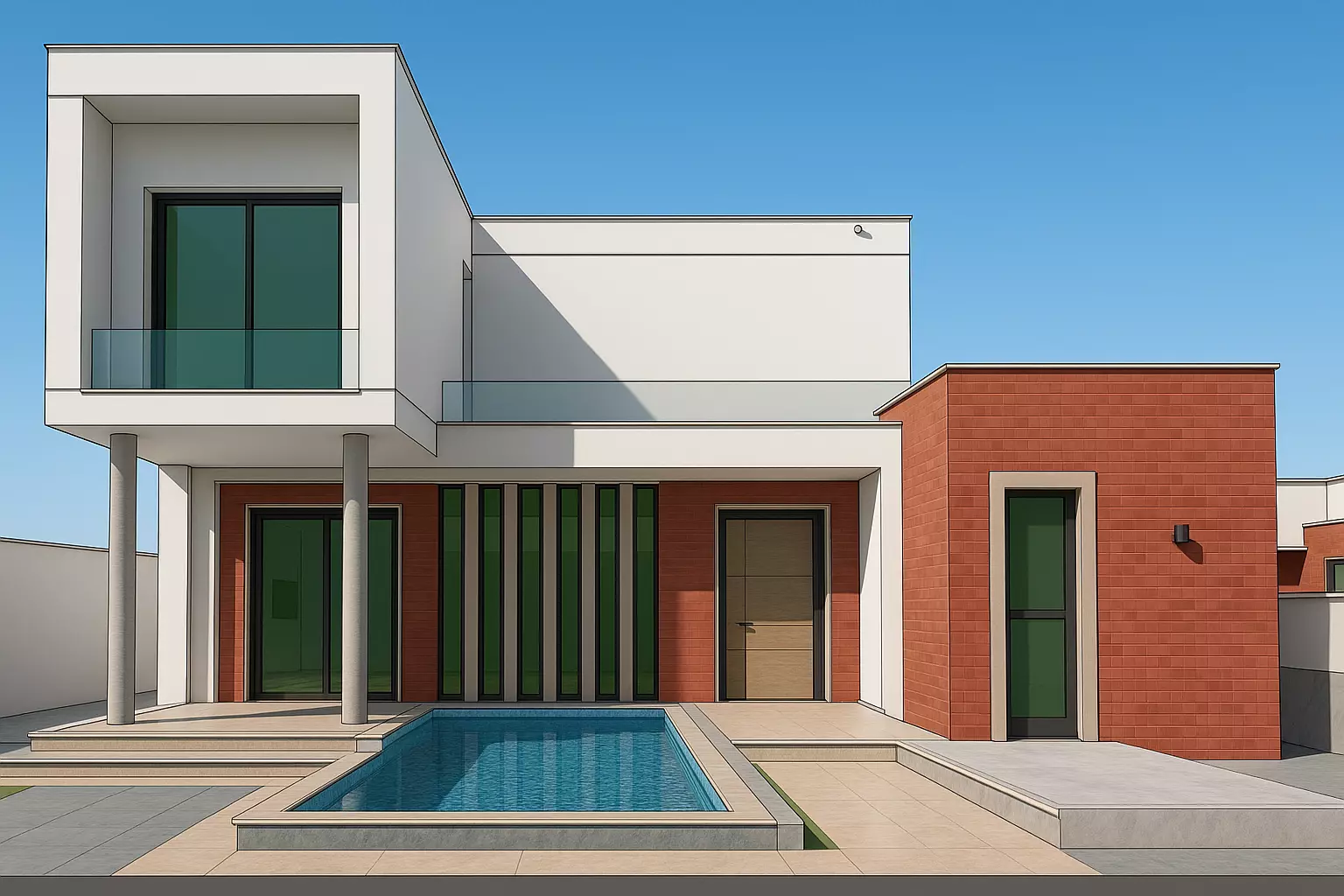 *Two-Story Waterfront Chalet – 3D Model*Part of an exclusive 8-chalet community, this two-story waterfront chalet offers breathtaking sea views and modern, cozy design. The ground floor features an open living and dining area with a fully-equipped kitchen and terrace access, perfect for outdoor relaxation. The upper floor includes private bedrooms with balconies overlooking the water.