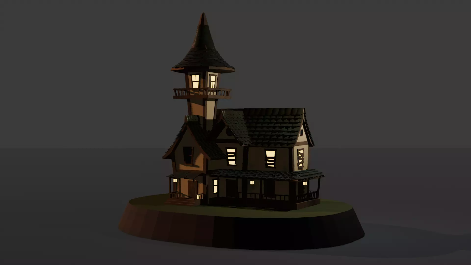 Abandoned Witch Tower Cozy Spooky Low Poly Diorama 3D model