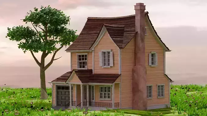 American Style Cottage Exterior 09 Low-poly 3D model