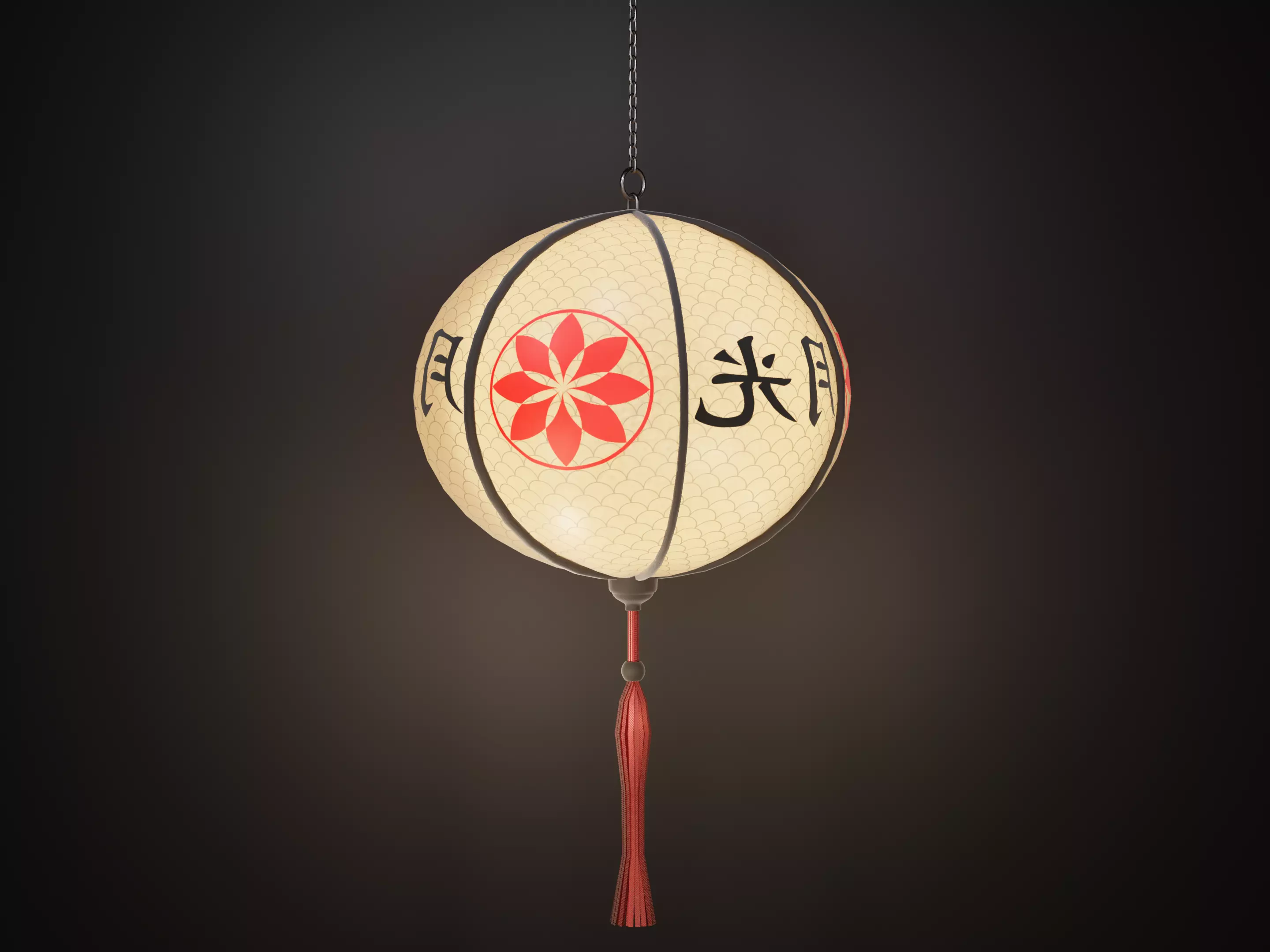 AsianLantern02 hanging lantern with chinese writing Low-poly 3D model