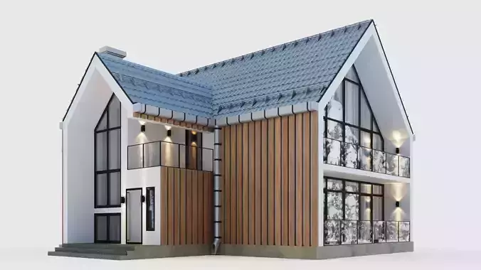 The archive contains floor plans with the arrangement of furniture and drawings of facades on a scale of 1:50.The model contains internal partitions of the floors, a staircase and a multi-level ceiling of the second floor.