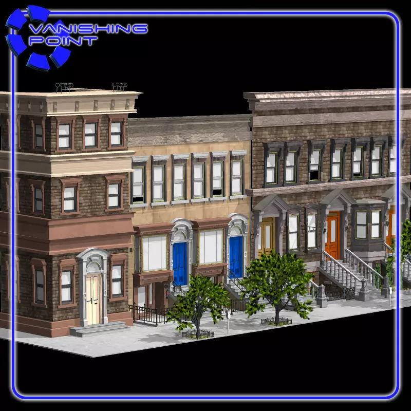 Inspired by the townhouse or brownstone buildings commonly found in city neighborhoods, these are multi-level rowhouse-style dwellings made of a brownstone material. Let your characters stroll down the sidewalk or sit on the stoop and shoot the breeze with your neighbors.