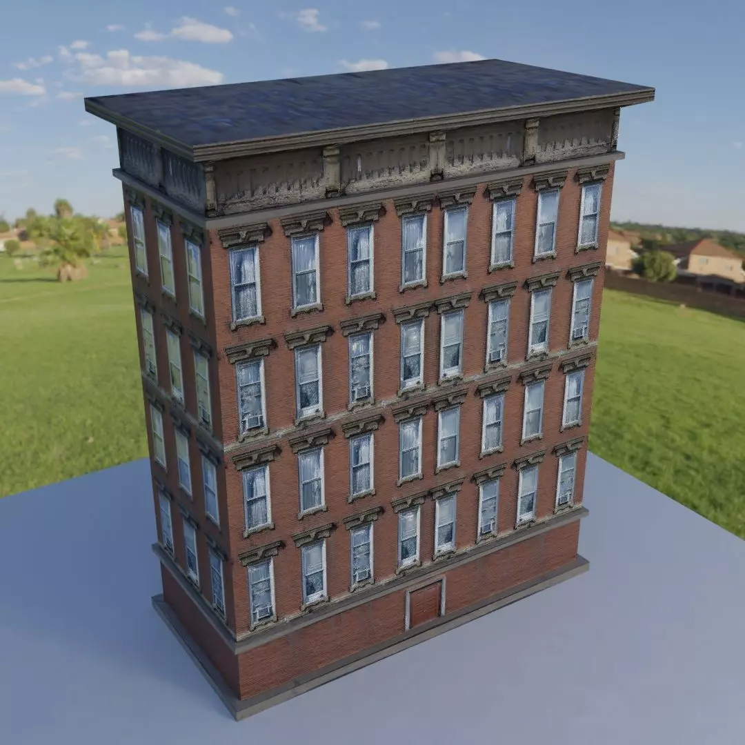 Lowpoly Building 3D model. Simple geometry Textured.