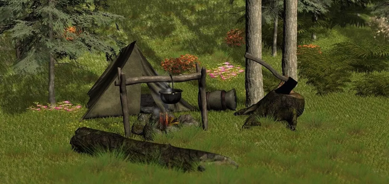 CAMPING tent and logs in woods 3D model