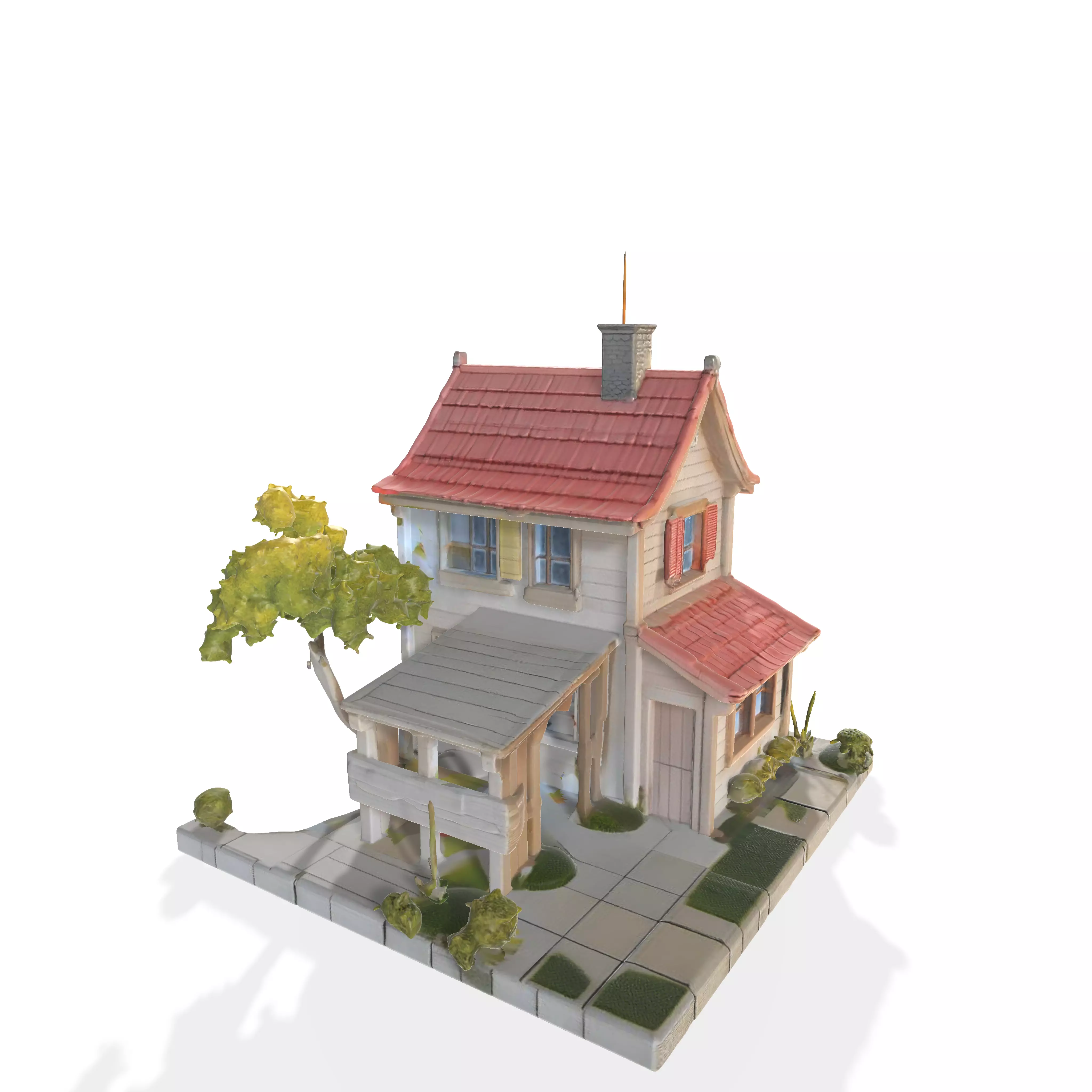 Step into the charm of a cozy European-inspired countryside with this detailed 3D model of a stylized cottage house. Designed with a warm and whimsical aesthetic, this model features a two-story structure with textured red roof tiles, wooden window frames, detailed stonework, and a welcoming front garden. Every element—from the hand-crafted porch to the miniature landscaping—has been carefully modeled to deliver a storybook feel.