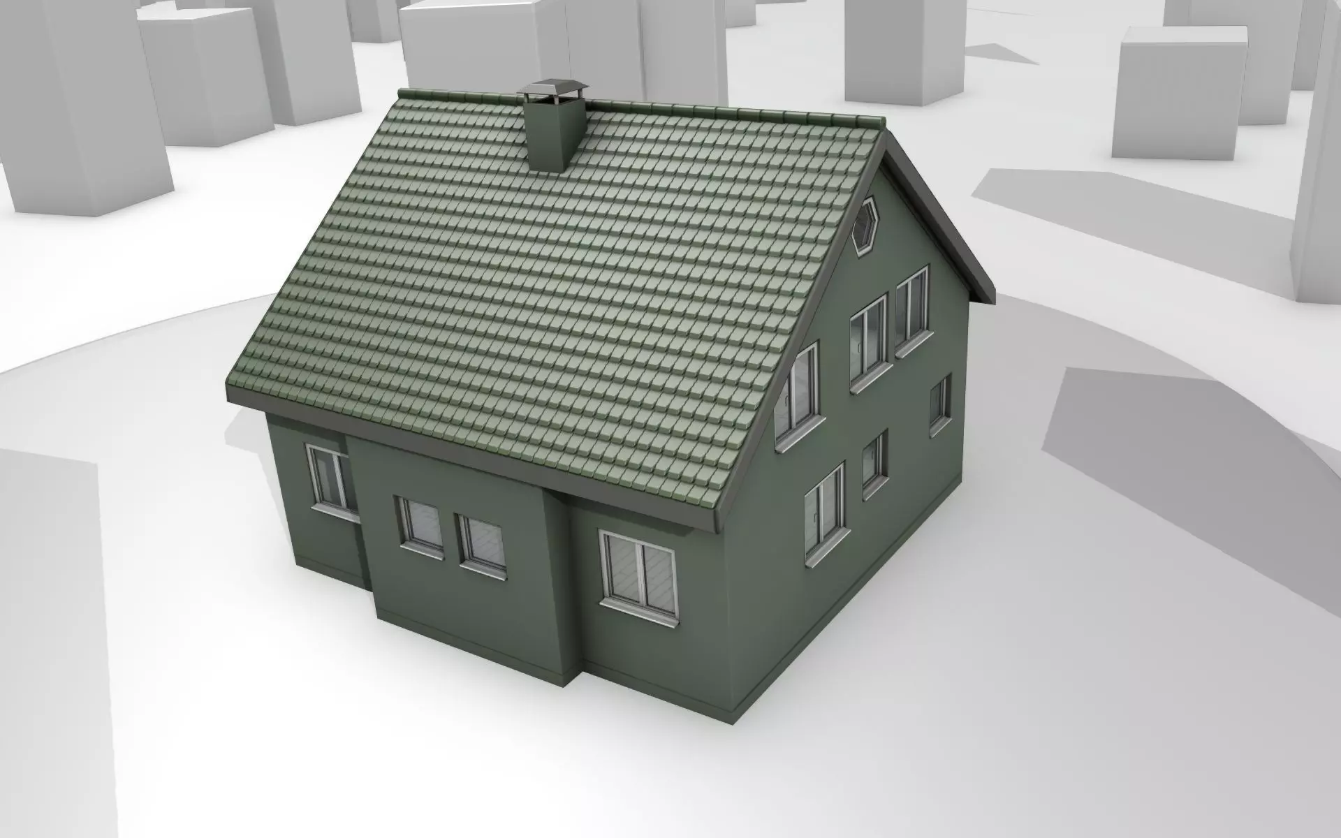 Here is a mid-poly city-houses with green roof and green walls.