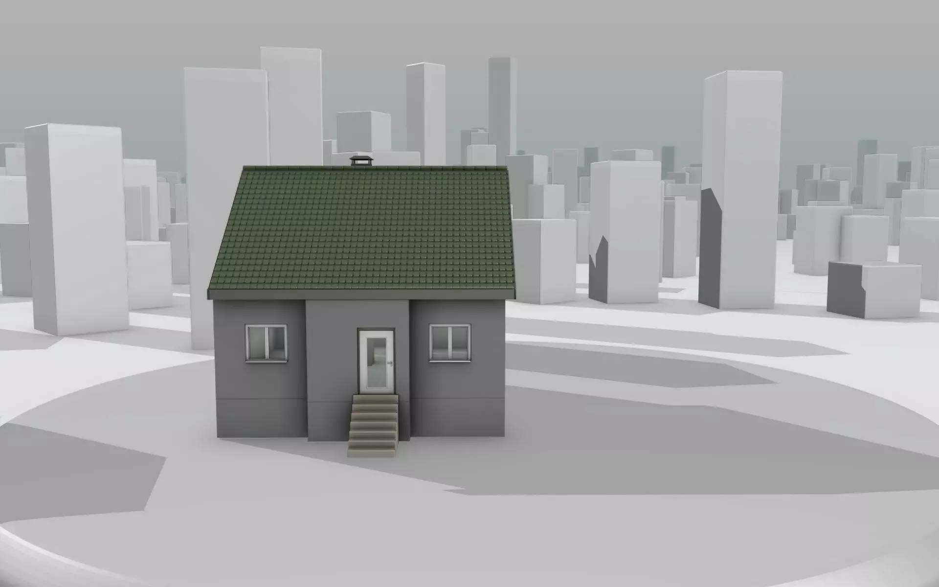 Here is a mid-poly city-houses with green roof and gray walls.