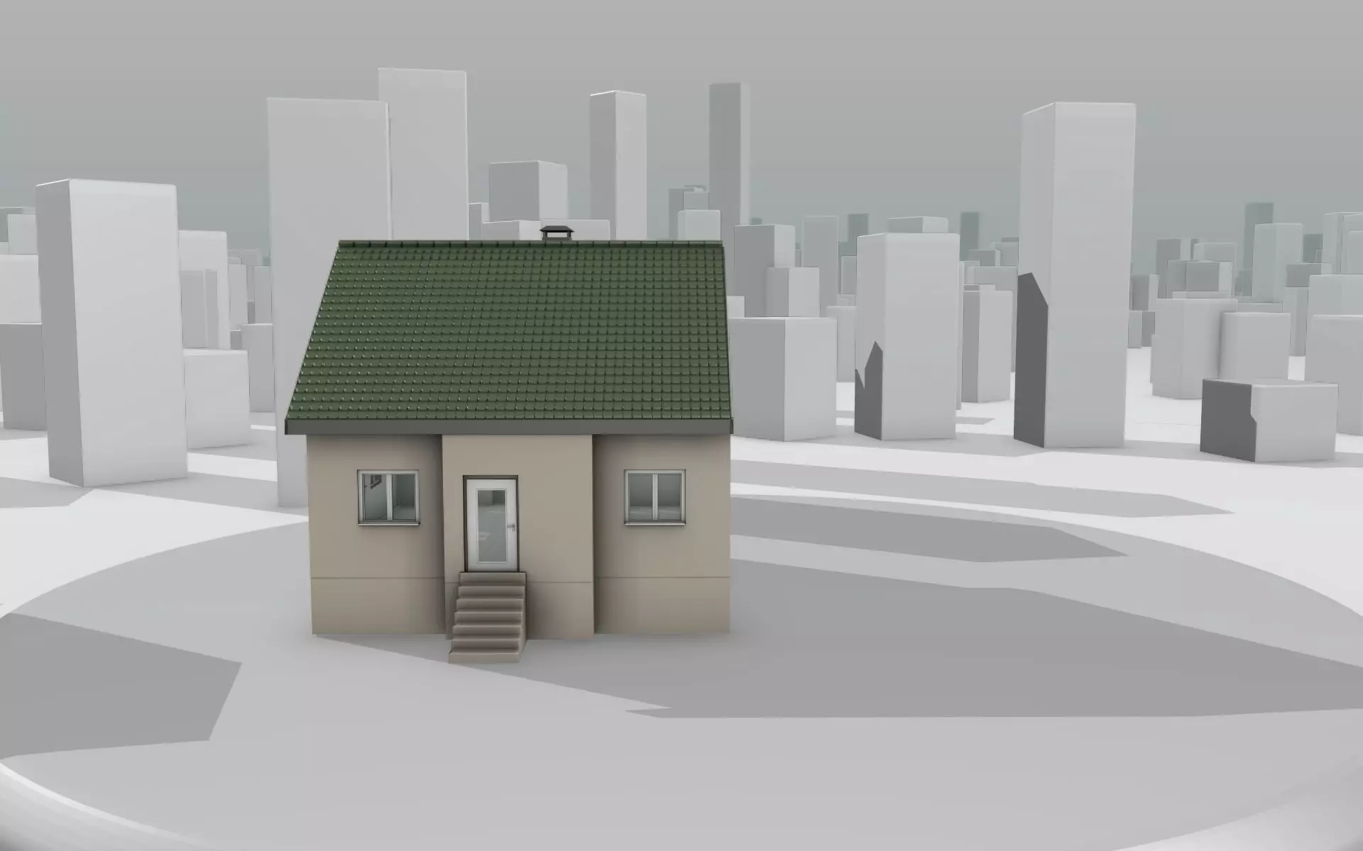 Here is a mid-poly city-houses with green roof and skinyellow walls.