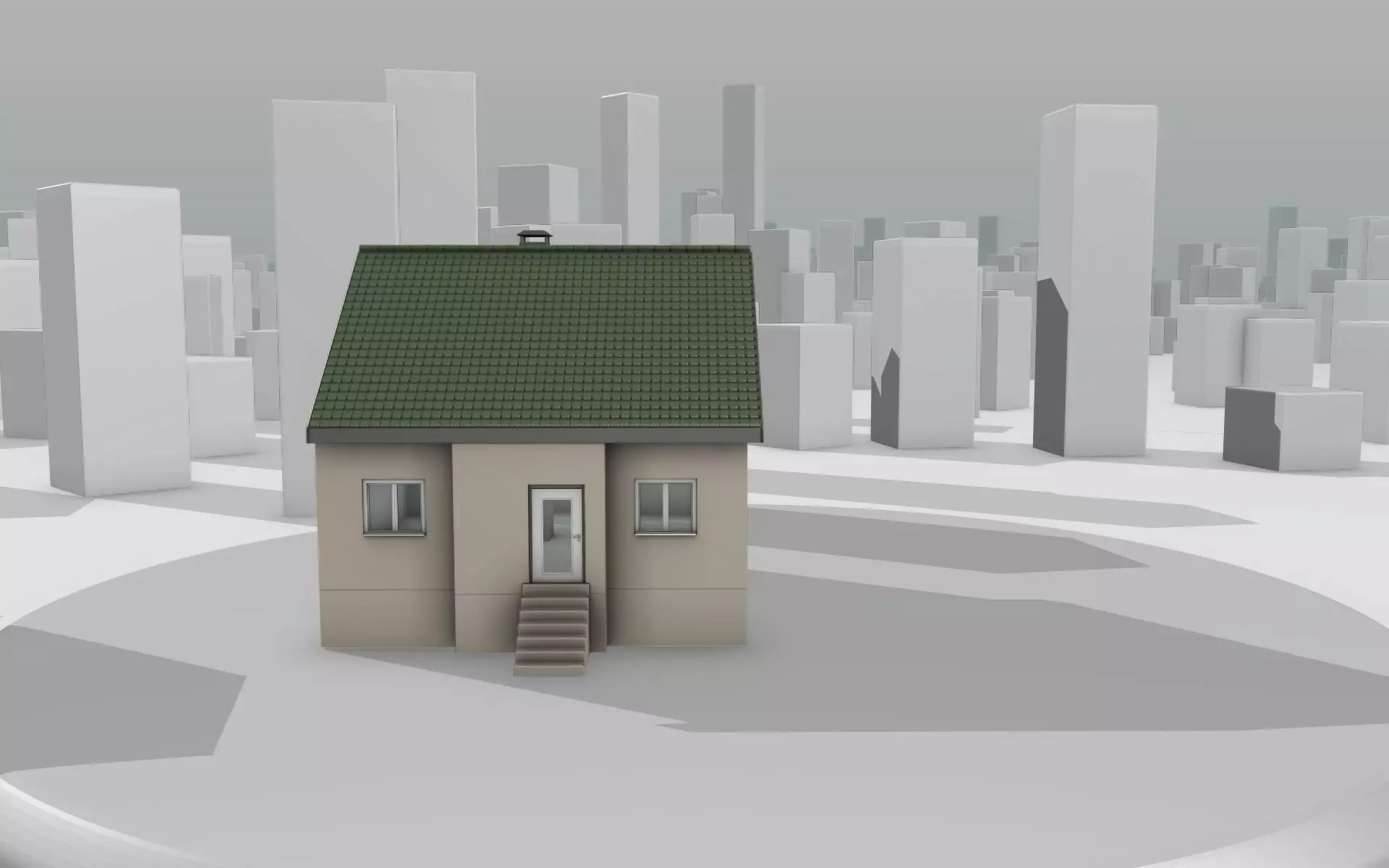 Here is a mid-poly city-houses with green roof and skinyellow walls.