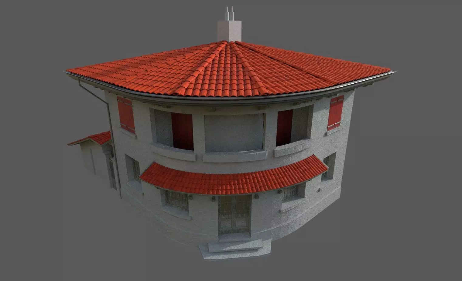 The rooftiles are real meshes. Model comes in .fbx and .obj format