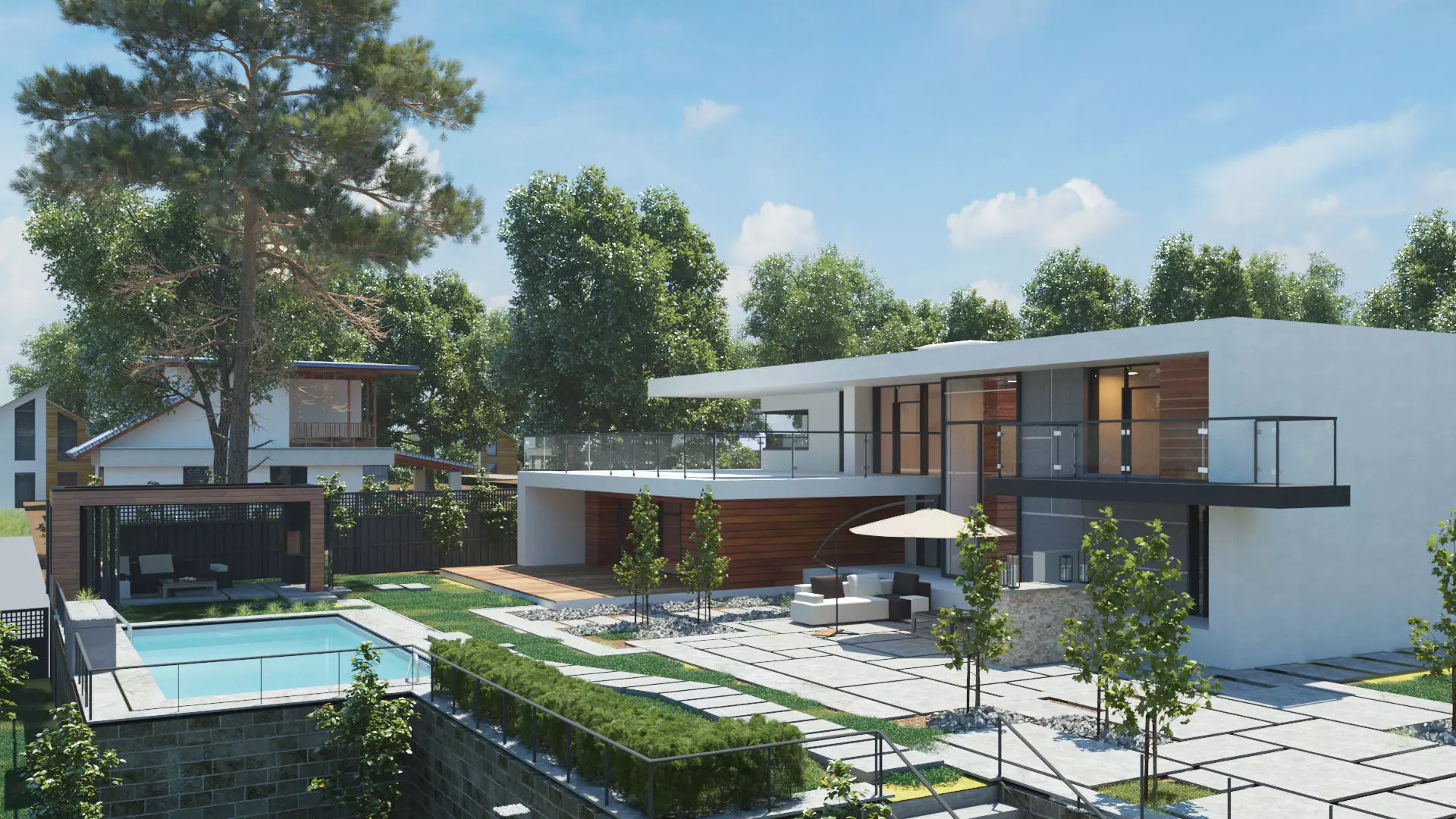 Video games: can be used to create a realistic and immersive environment for players to explore.Movies and TV shows: can be used to create realistic CGI backgrounds for movies and TV shows.Architecture and design: A modern house 3D scene environment with forest surrounded can be used by architects and designers to visualize their projects and create realistic renderings. Formats: