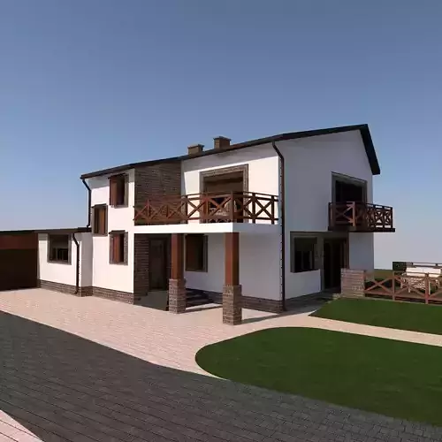 A model of a country house, where it is a house built on the plot border. It is a color-coded model. This means that by changing the color, white turns white everywhere. The roof is textured. The model is perfect as a background for your visualization, as well as for tests on rendering engines.