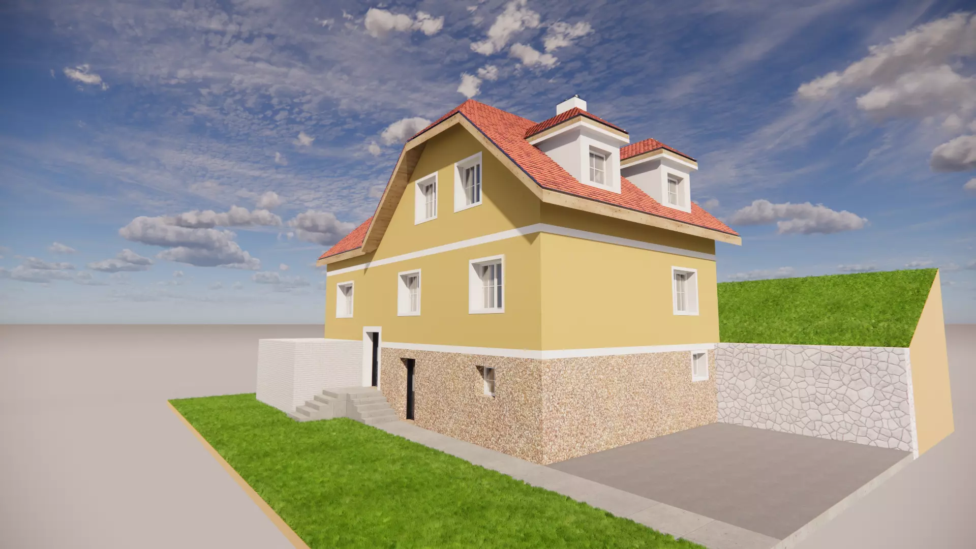 The model has material settings that define how surfaces look (color, shine, transparency, etc.).