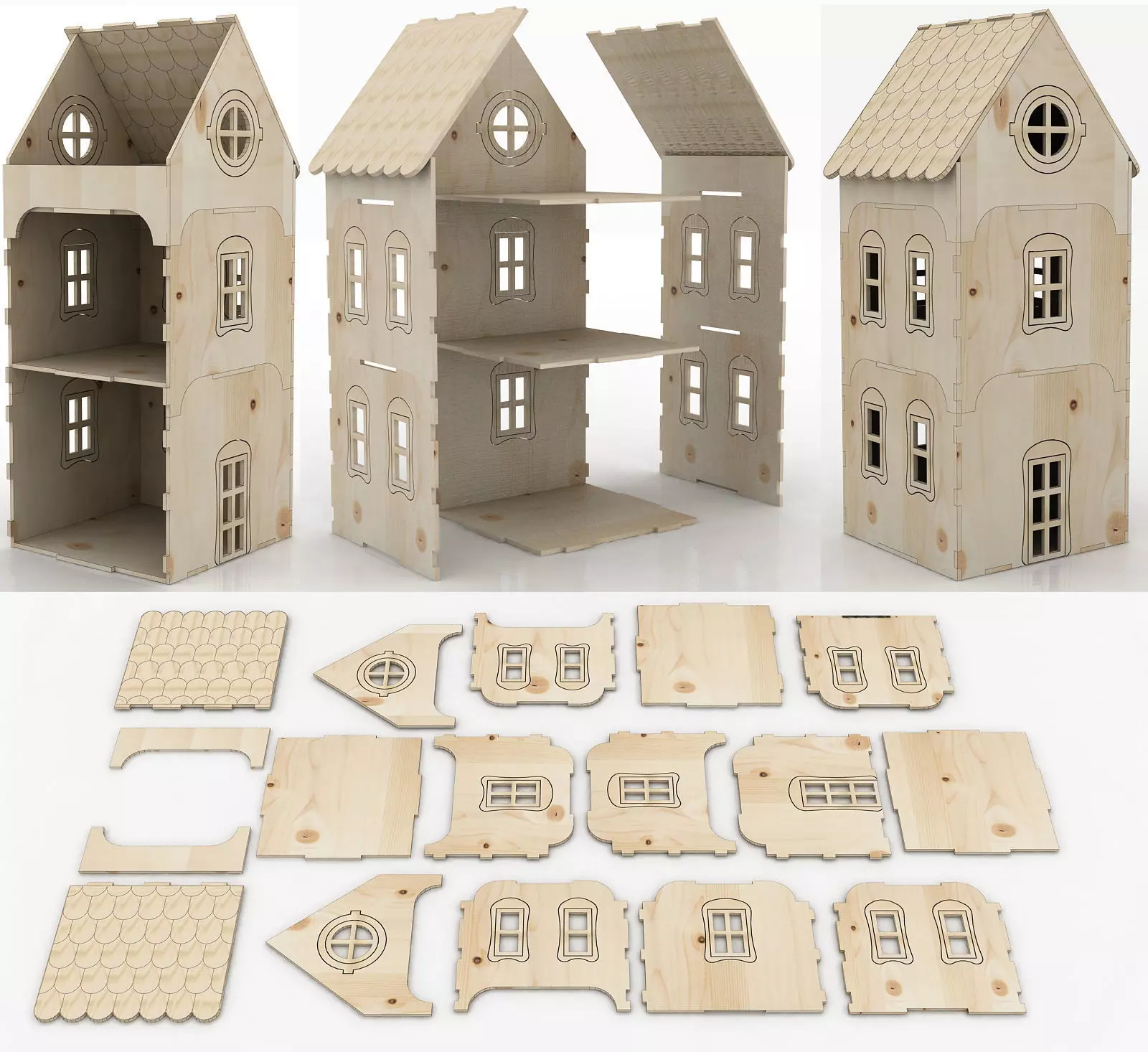 Doll House of CNC manufacturing.The model fully prepared for milling on CNC machines.Plywood is made of wood and is an environmentally friendly and safe material. Perfectly fit into any nursery and interior.polys: 8431verts: 17168max V-Ray - with materials for V-ray 3.6 or higher. 3d max 2018