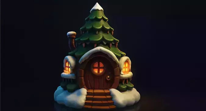 stylized fantasy cottage design , winter woodland house asset , enchanted environment modeling , magical holiday scene design , cozy fantasy architecture , snow covered cottage model , glowing window fantasy home , whimsical game environment asset , storybookworld building piece , detailed hand sculpted structure , charming winter scene prop , fantasy village environment asset , stylized environmental art piece , warm light cottage render , fantasy forest home design , atmospheric winter setting asset , high quality stylized model , fantasy diorama centerpiece , whimsical artstation portfolio asset , charming seasonal environment model