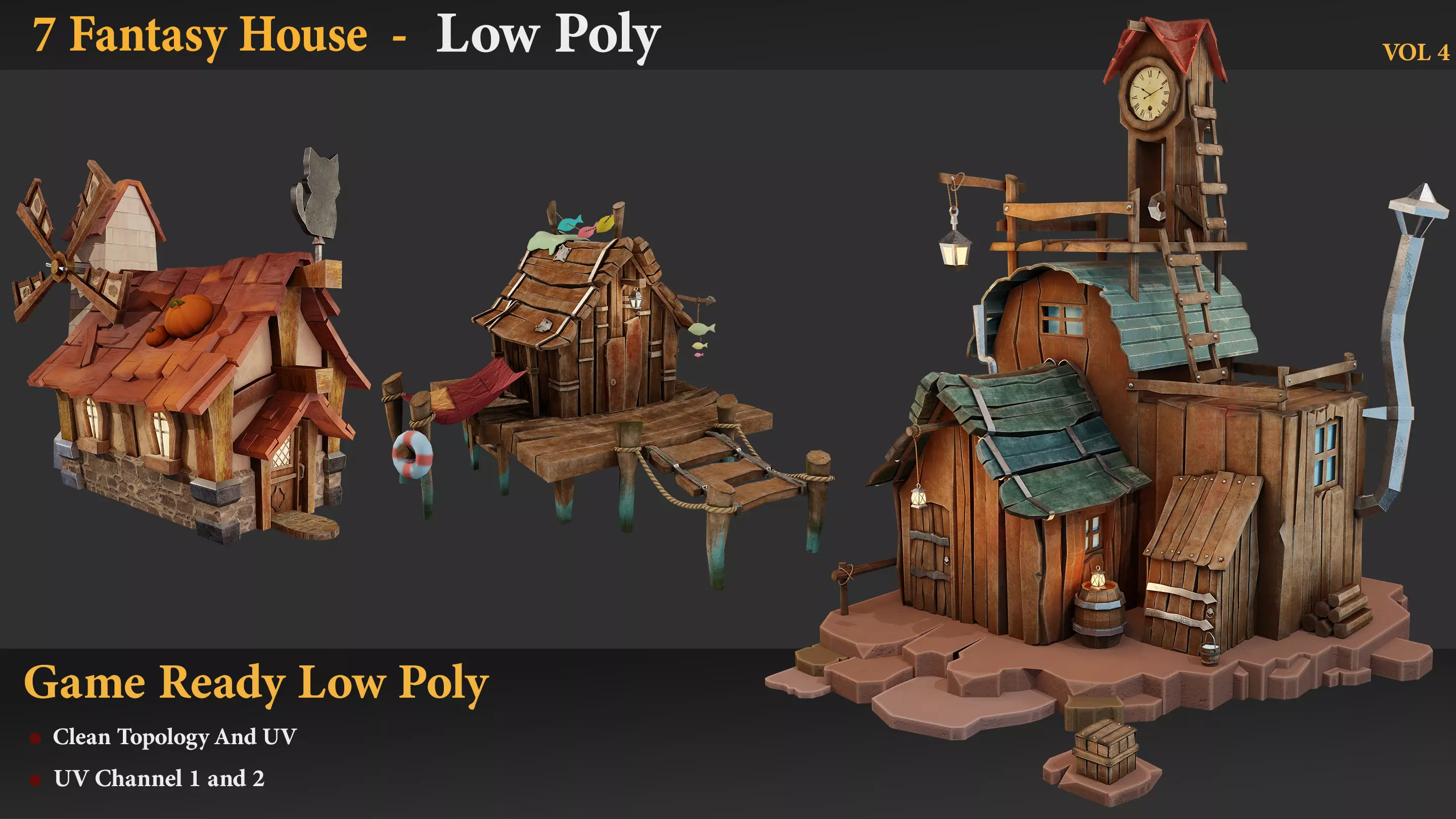 Are you looking for amazing houses to make your games more interesting? Look no further than this great collection of high quality fantasy style homes This package includes 7 unique and stunning houses, each with its own material and design The output textures are of 2k quality