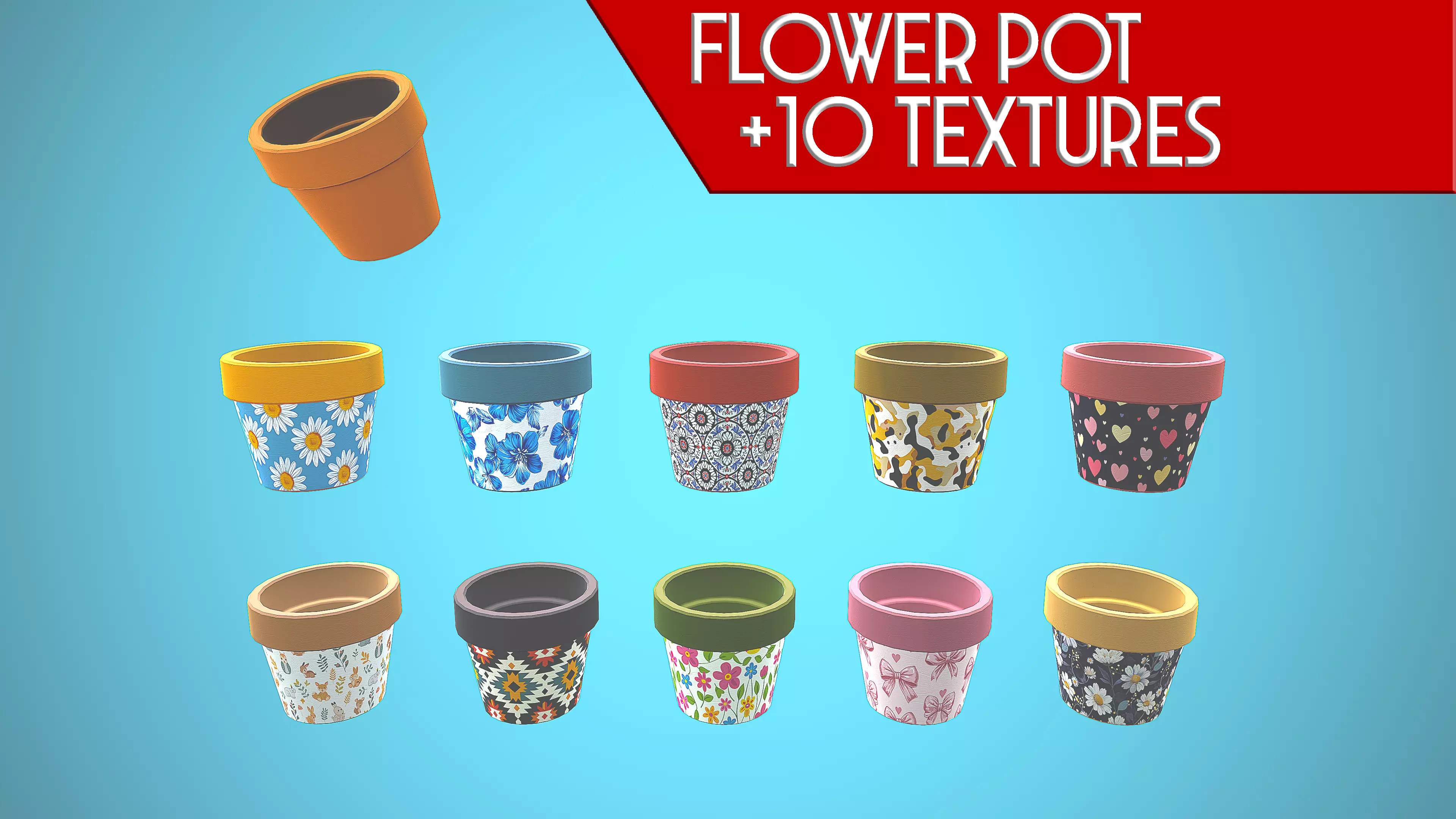 Low poly textured model of FLOWER POT CARTOON STYLIZED +10 TEXTURES Well-textured and ready for Virtual Reality (VR), Augmented Reality (AR), games and other real-time apps for handheld devices.