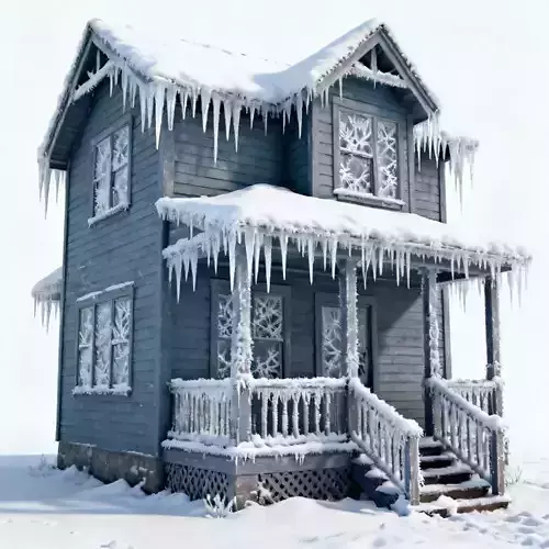 The Overall Concept This asset depicts a small, two-story home that has been completely overtaken by a deep freeze. It is an ideal environmental prop for survival games, winter horror scenes, or post-apocalyptic maps where the heating has failed long ago.