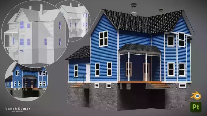 This model features a 2-floor house with a basement, fully enterable interior, and optimized geometry for smooth performance in modern game engines.