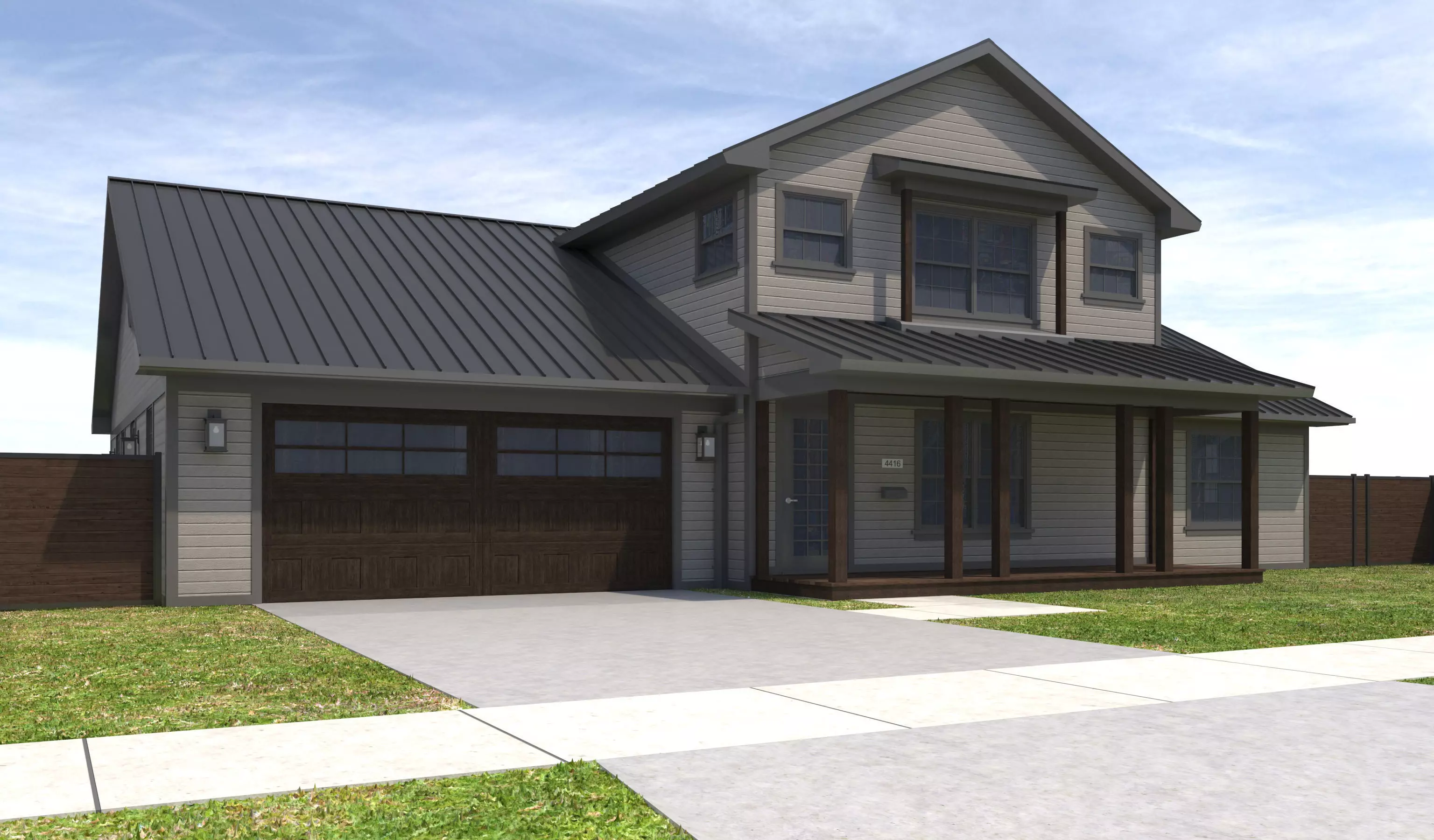 - +/- 2,789 Square Foot 2 story Home with a Garage . House has Gray Siding Exterior Walls. Gray Window Frames, Gray Doors. Property has a Dark Wood fence. House has an enclosed deck in the yard.