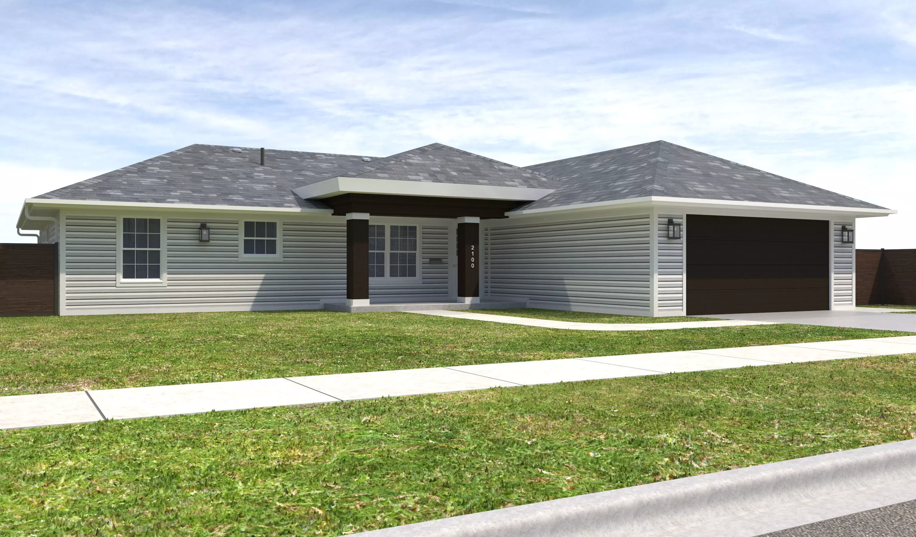 Materials: Shingles, Concrete, Siding,Metal Panel,grass, road, wood. Trim, Door, can all easily be changed to any color.