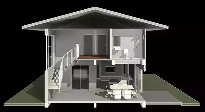 The model has material settings that define how surfaces look (color, shine, transparency, etc.).