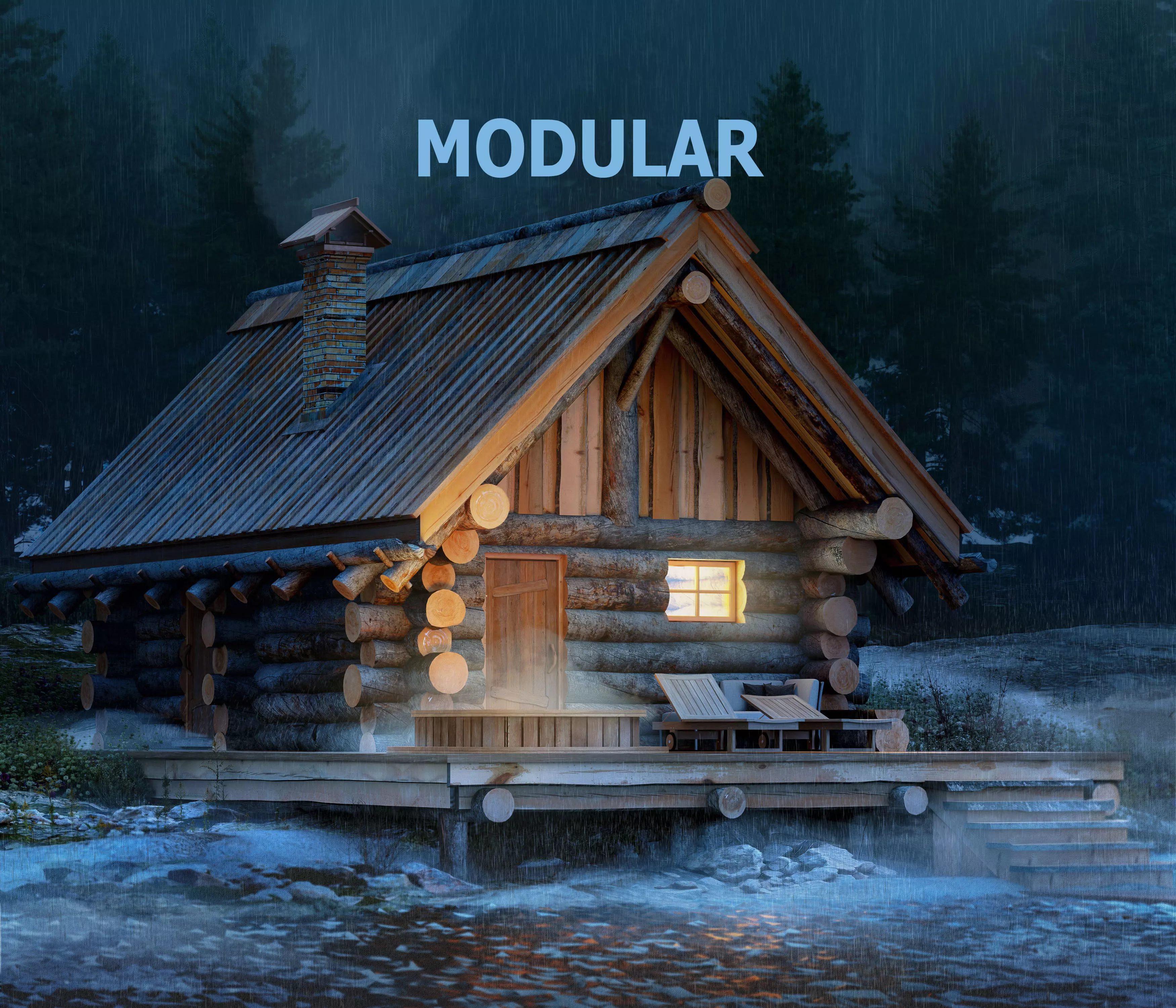 • Log cabin MODULAR, ready for reassembly of a new project.