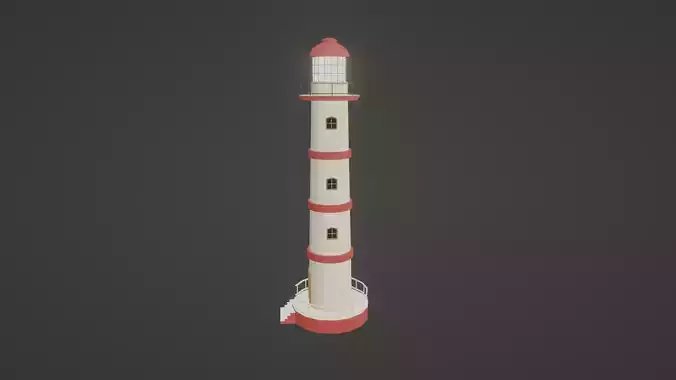 This is a stylized low poly lighthouse 3D model, perfect for games, animations, cinematic scenes, architectural visualizations, and stylized environments.