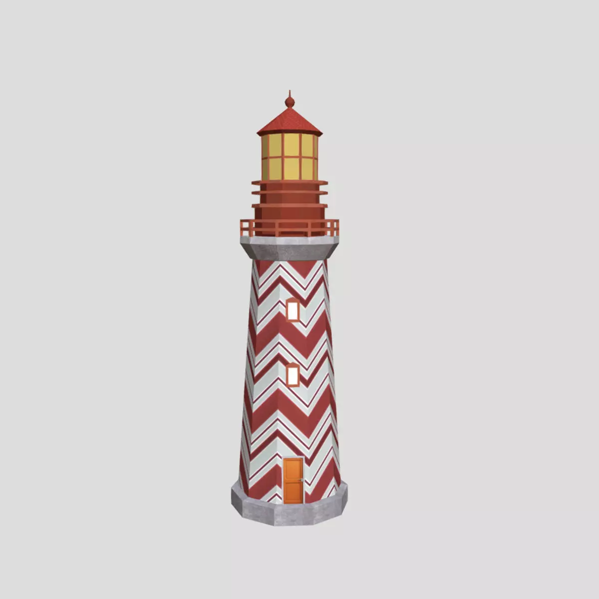 3D model of a Lighthouse. The model is low-poly; has one material, PBR textures 1024x1024 (base color, metalness, roughness, normal).