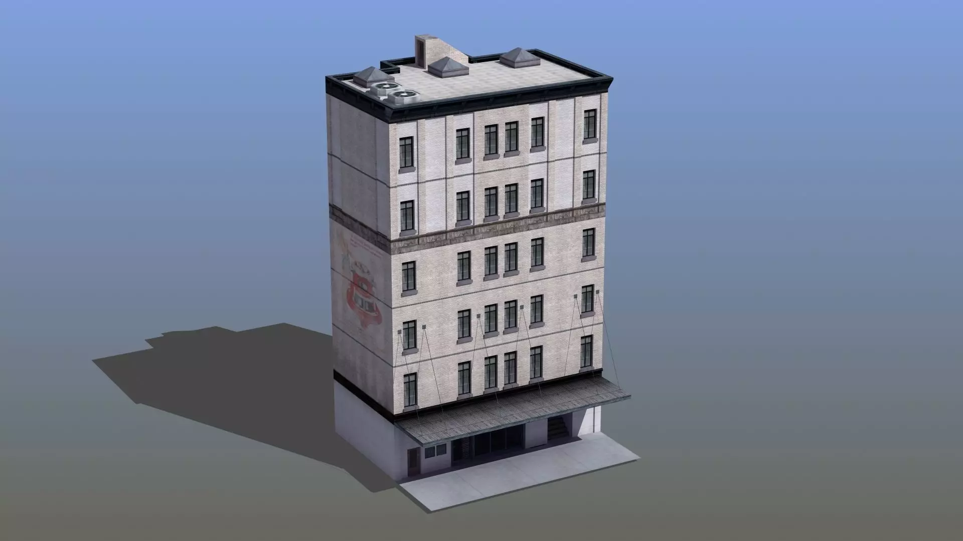 Downtown Loft Apartment building. Model uses single 4096 square colore map texture page, with alpha channel. Fire escapes use their own 512 square texture. Great multipurpose 3D model (ideal for offline rendering or real time uses such as games or simulation).