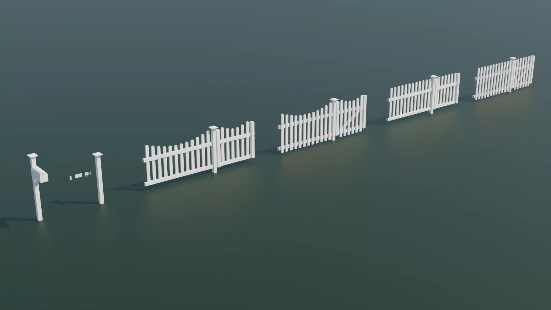 This download contains a variety of low poly and uv unwrapped suburban style picket fences, gates, and hardware pieces to help you add that finishing touch to your 3D project!