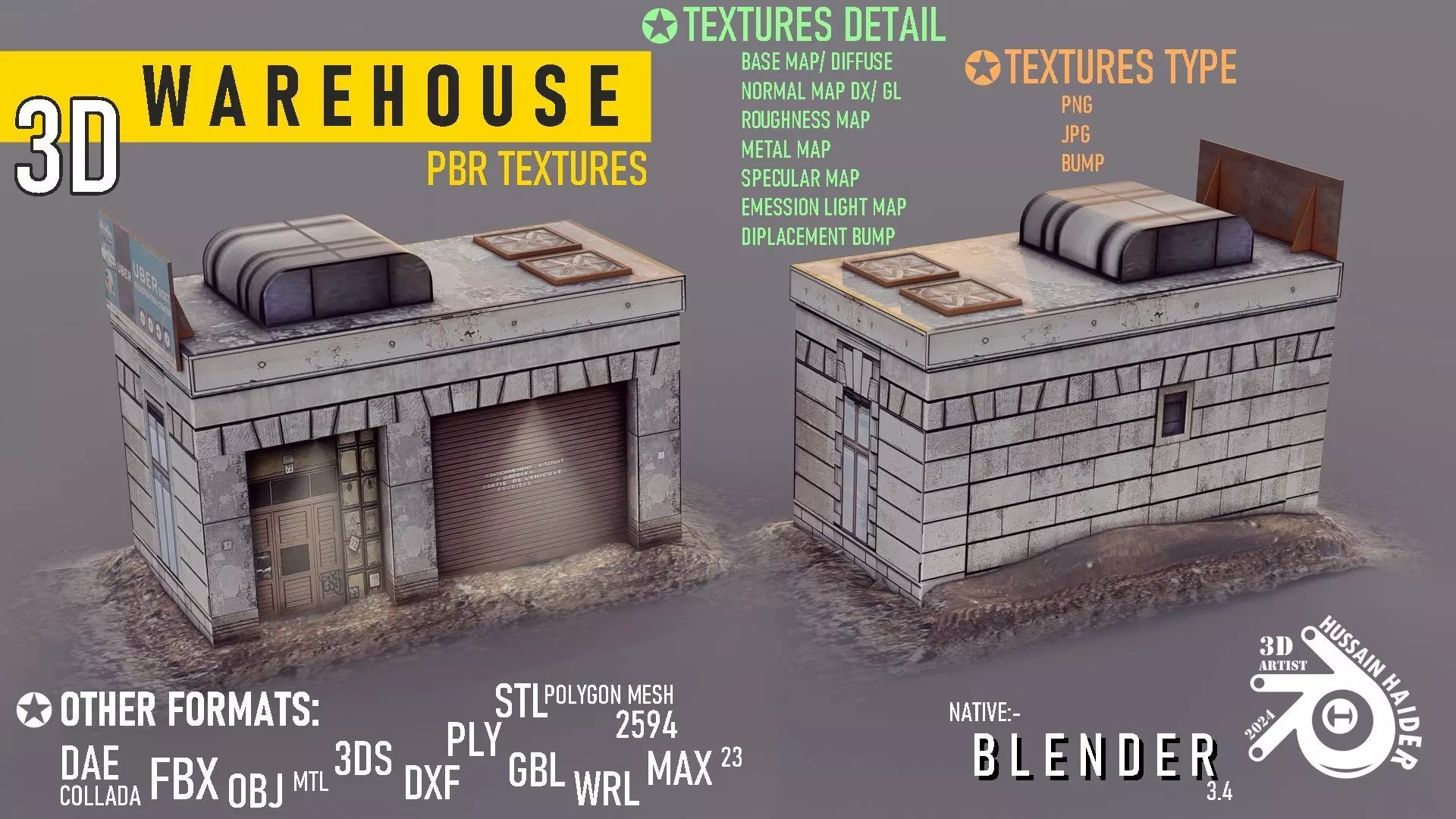Uses Physically Based Rendering materials, which give the model realistic lighting and surface properties.