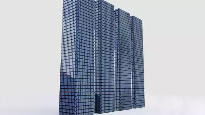 LowPoly realistic Skyscraper set of four metal bars Low-poly 3D model
