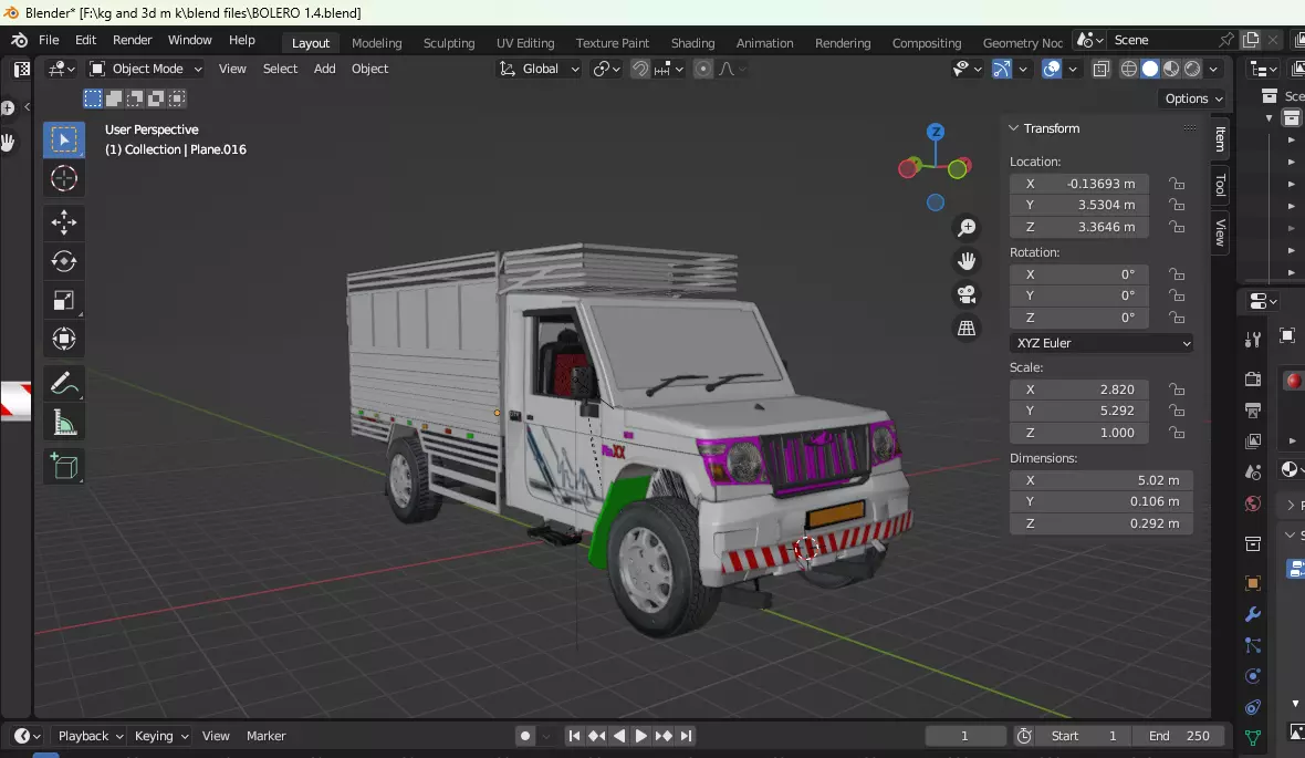 The model has material settings that define how surfaces look (color, shine, transparency, etc.).