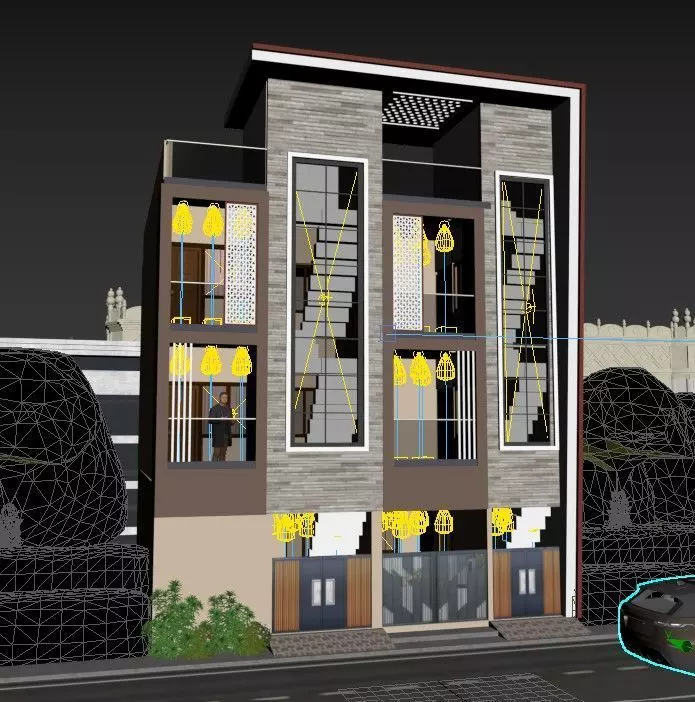 The model has material settings that define how surfaces look (color, shine, transparency, etc.).
