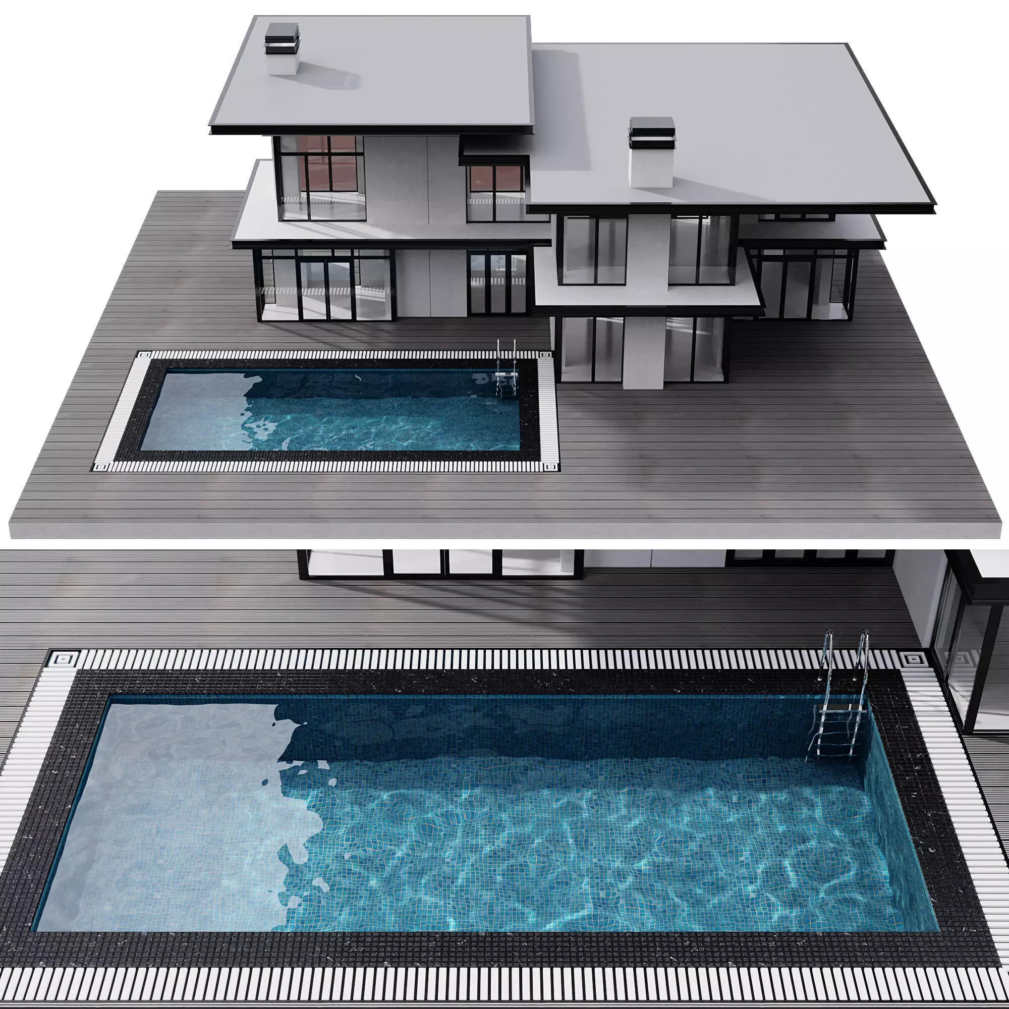 detailed building with different facades and pool