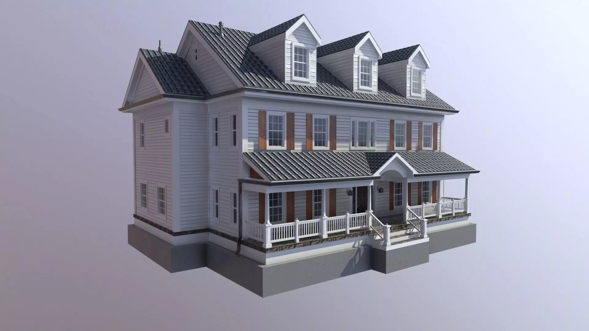 Modern Suburban House with 5x PBR Texure Sets. This asset is ideal for realtime applications due to low polygon count and optimized texture atlas. Solar panel is a separate object, for easy removal.