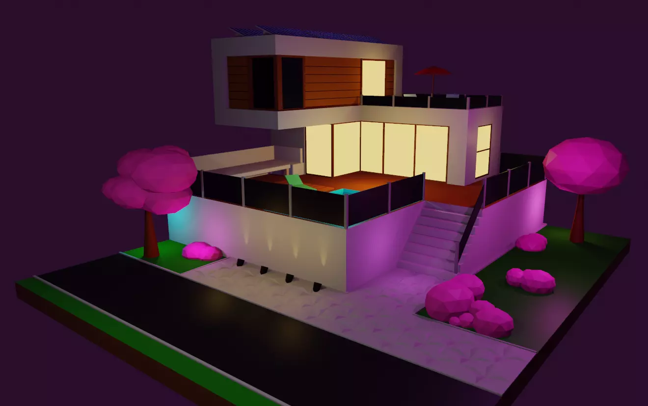 The model has material settings that define how surfaces look (color, shine, transparency, etc.).