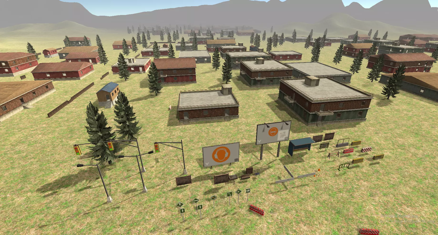 Props list:5 types of road cones8 types of road blocks2 types of fences2 types of walls1 sofa1 cabnite1 table1 dustbin2 bill boards2 types of traffic lights1 bus stop2 types of light poles8 types road side signs