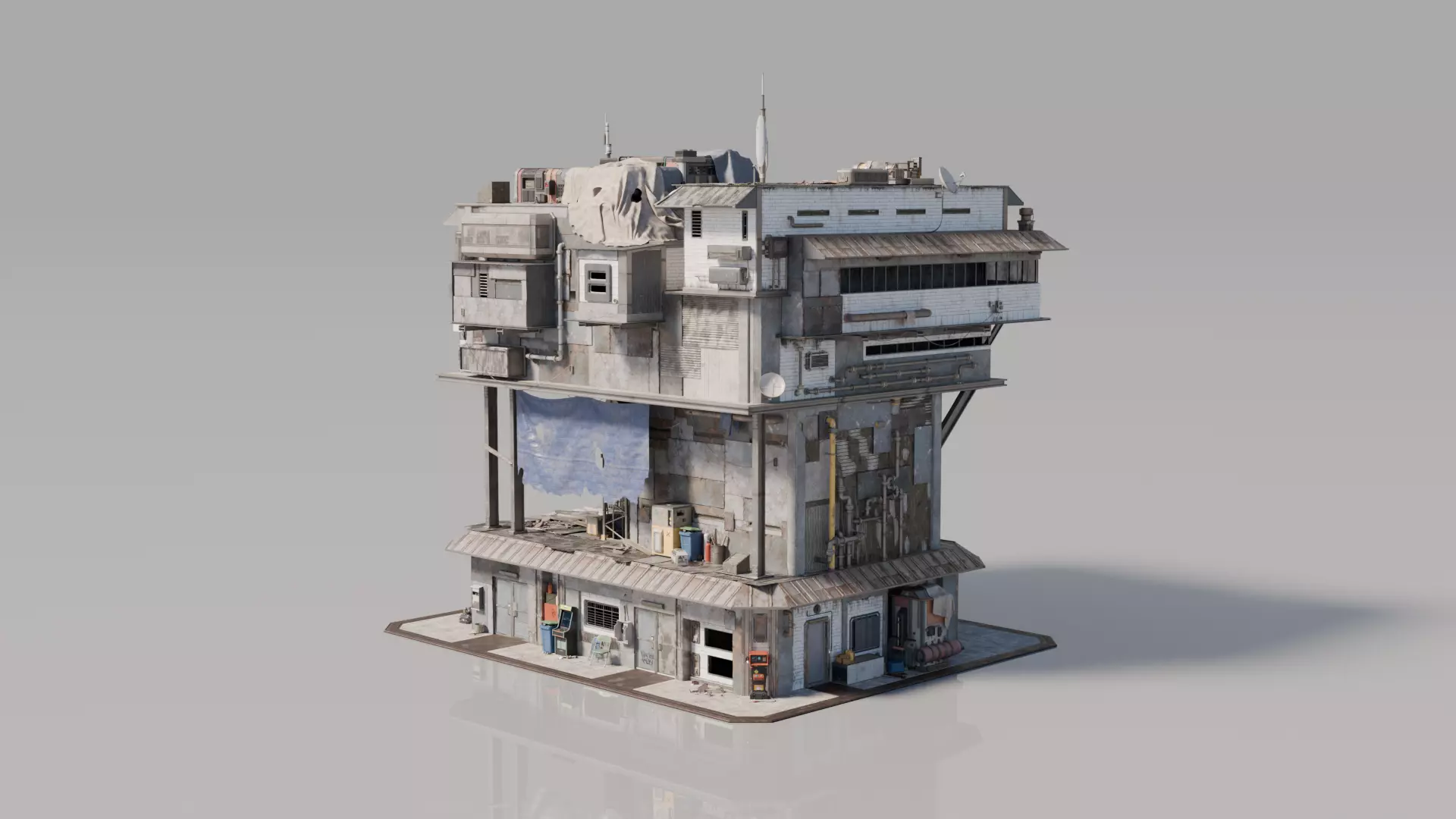 Explore this highly detailed 3D model of a uniquely designed house featuring unconventional modular structures and urban-inspired elements. Crafted with meticulous attention to architectural details and realistic textures, this model adds an authentic, gritty atmosphere to your scenes. Perfect for game environments, architectural visualization, or creative projects, it comes in Blend, OBJ, FBX, and STL formats, with 4K PBR textures for highly realistic rendering. Each component is optimized for easy animation and seamless integration into your projects.