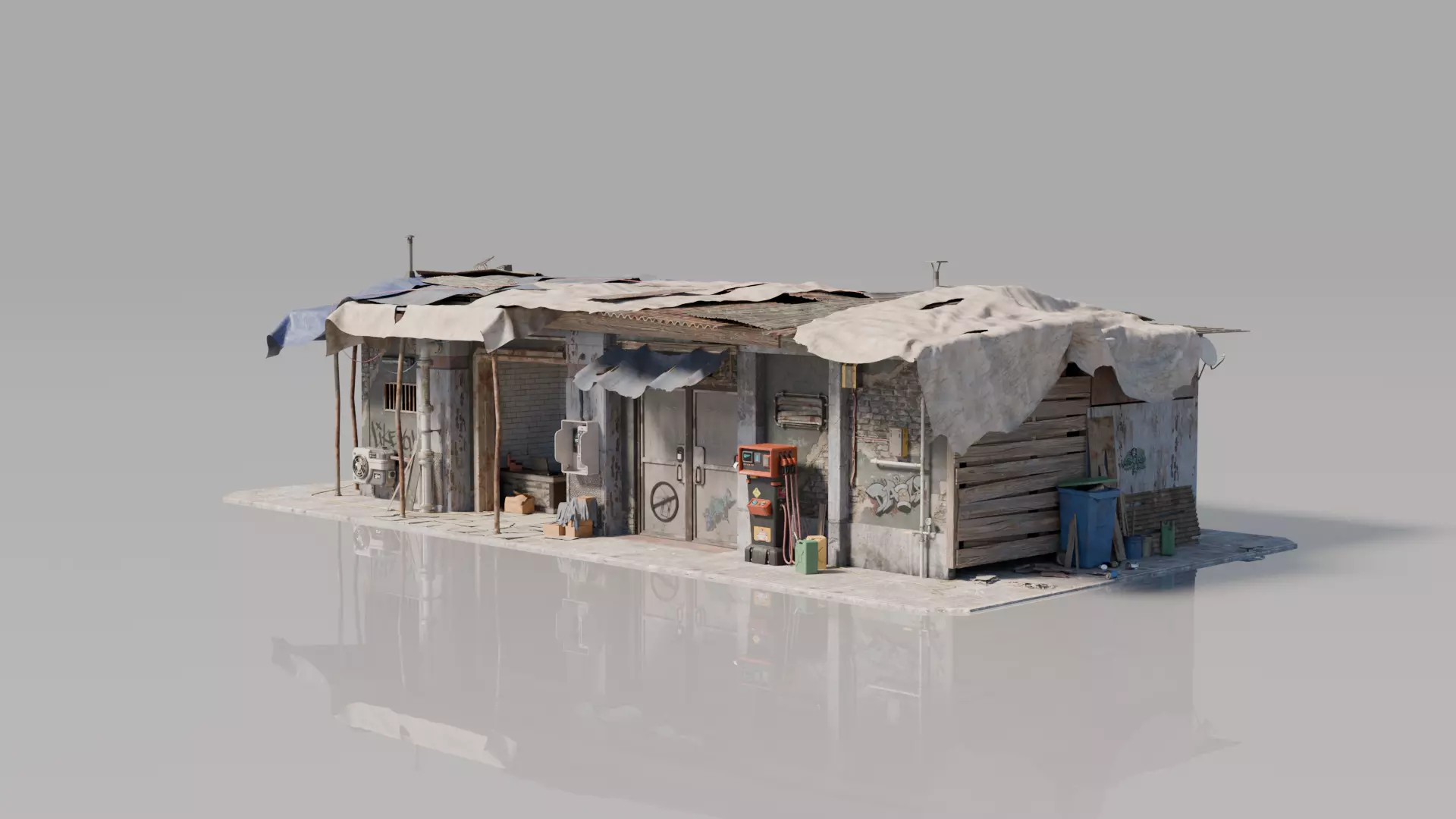 Explore this highly detailed 3D model of a uniquely designed house featuring unconventional modular structures and urban-inspired elements. Crafted with meticulous attention to architectural details and realistic textures, this model adds an authentic, gritty atmosphere to your scenes. Perfect for game environments, architectural visualization, or creative projects, it comes in Blend, OBJ, FBX, and STL formats, with 4K PBR textures for highly realistic rendering. Each component is optimized for easy animation and seamless integration into your projects.