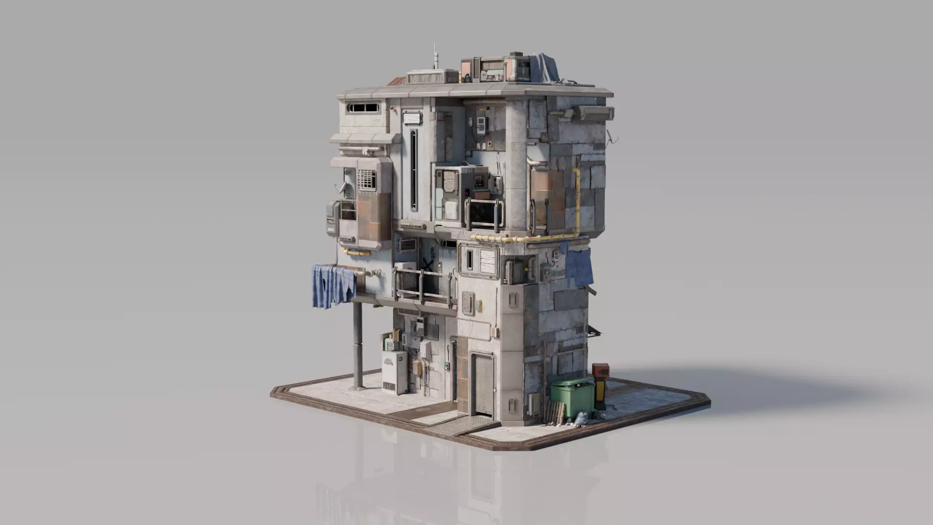 Explore this highly detailed 3D model of a uniquely designed house featuring unconventional modular structures and urban-inspired elements. Crafted with meticulous attention to architectural details and realistic textures, this model adds an authentic, gritty atmosphere to your scenes. Perfect for game environments, architectural visualization, or creative projects, it comes in Blend, OBJ, FBX, and STL formats, with 4K PBR textures for highly realistic rendering. Each component is optimized for easy animation and seamless integration into your projects.
