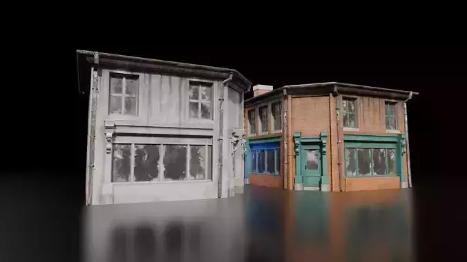 This package includes two detailed low-rise shop buildings designed for use in games, real-time engines, and cinematic scenes. The assets feature a classic urban storefront style, suitable for old town streets, European-inspired environments, stylized cities, or abandoned/aged settings.