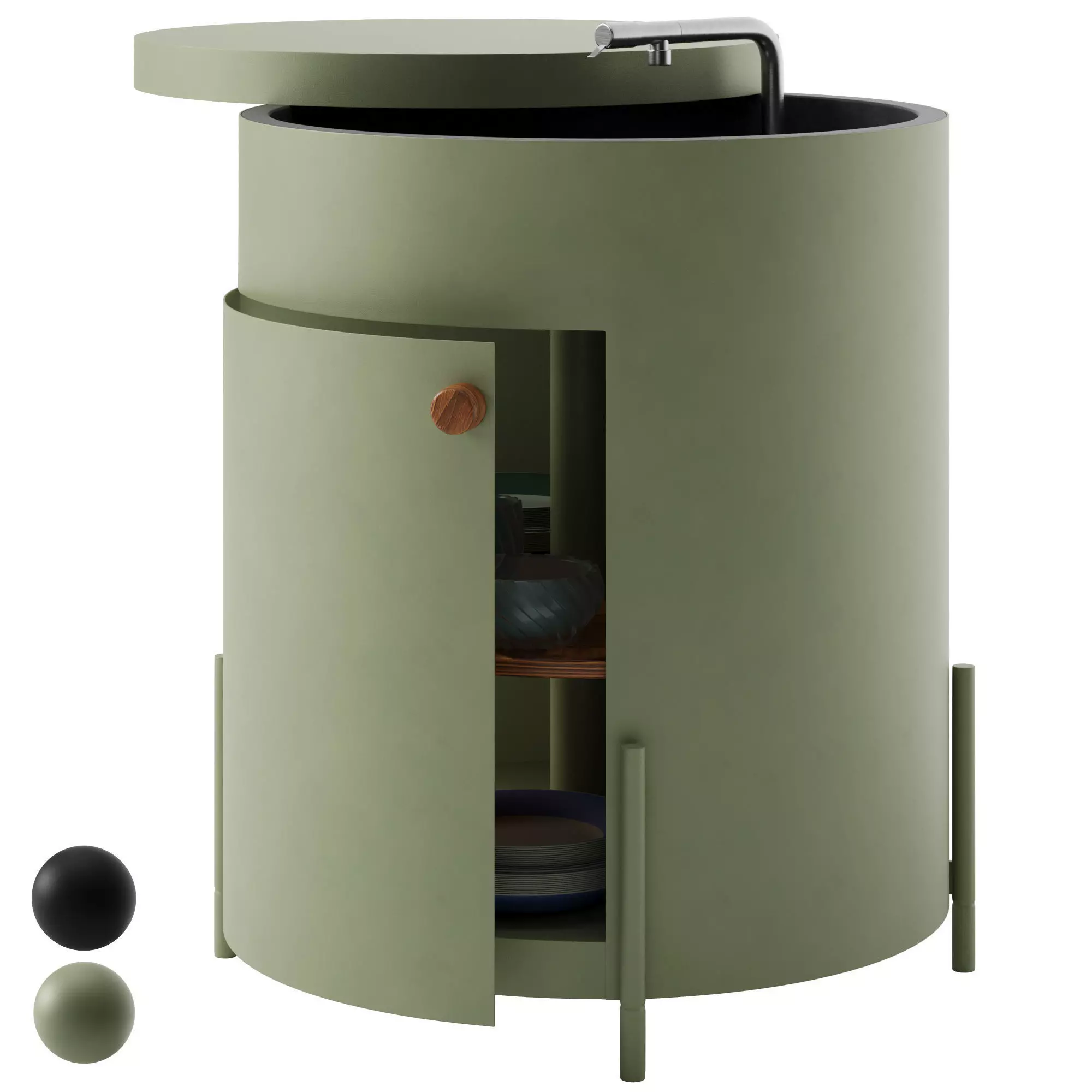 Phil module by ETHIMO set.The set includes a sink, grill, and hob.Dimensions:Sink: Height - 95 centimetersDiameter - 75 centimeters.Grill: Height - 98 centimetersDiameter - 75 centimeters.Hob: Height - 98 centimeters.Diameter - 75 centimeters.Model for smoothing (Turbosmooth)Units of measurement are centimeters.Render: Corona 11.Link: https://www.ethimo.com/en/product/phil-brazier-grill-module