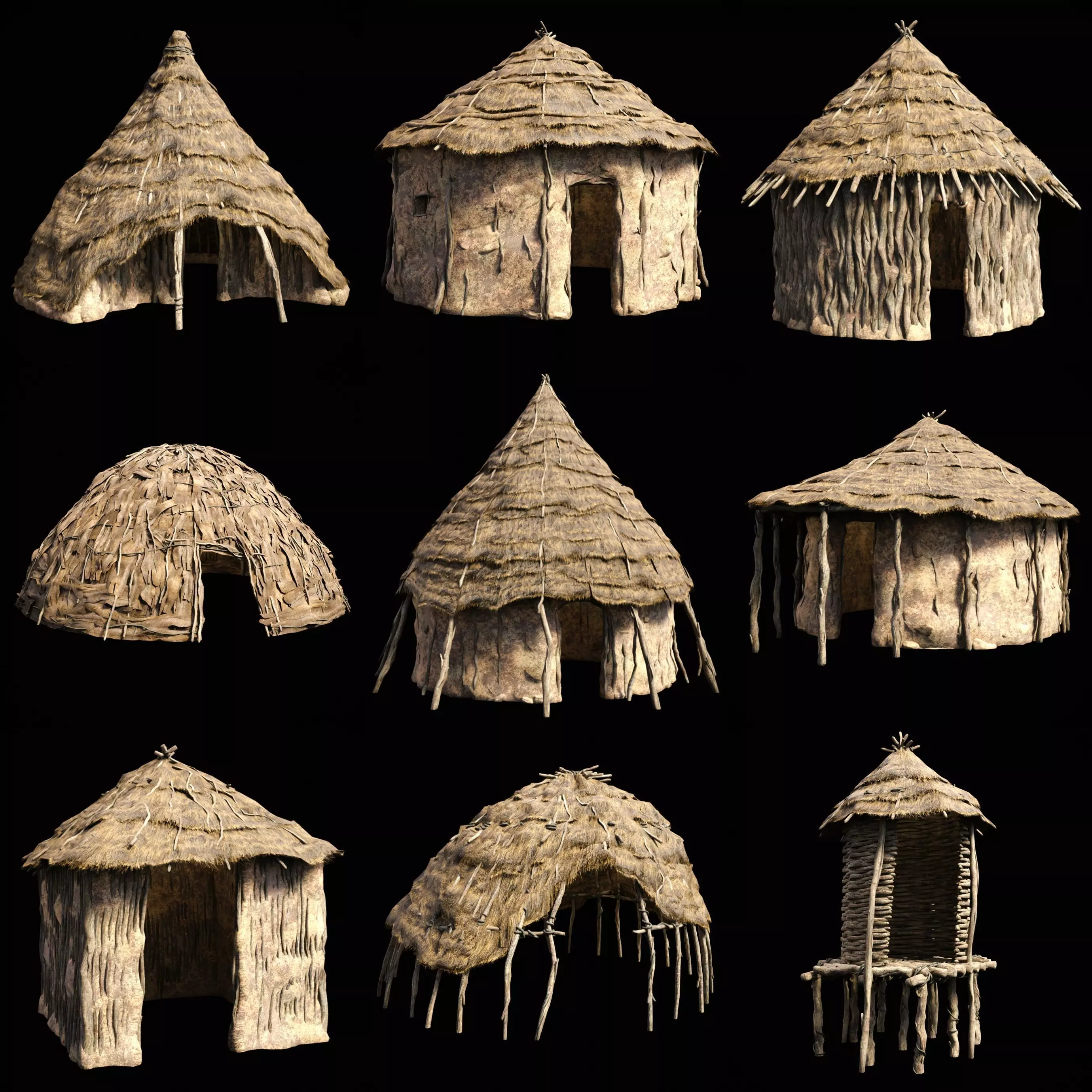 • Next gen, AAA quality, game-ready collection of primitive african huts.